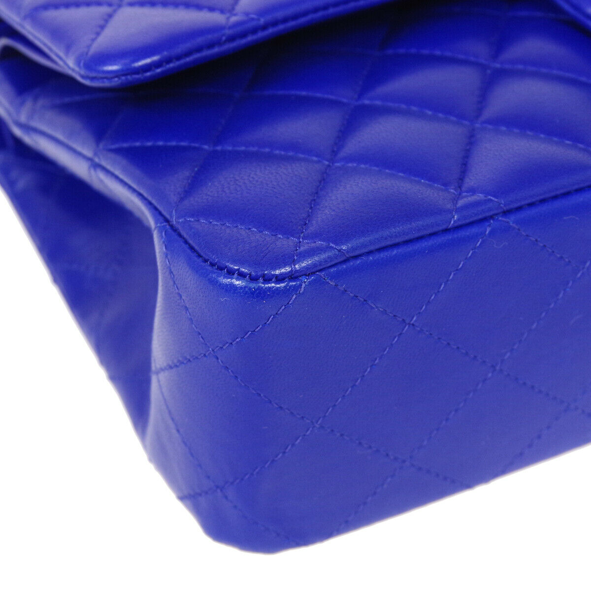 CHANEL Timeless Double flap double  chain Blue leather Lambskin.