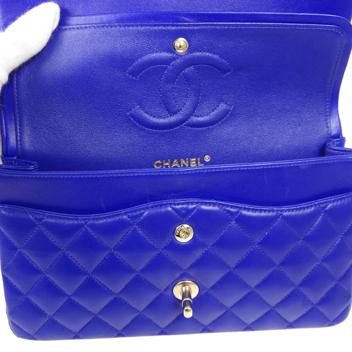 Be the first to review “CHANEL Timeless Double flap double chain Blue leather Lambskin”